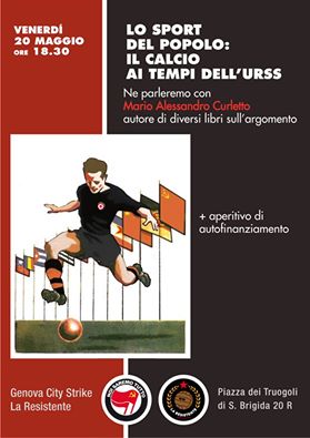 Nuovo podcast ascoltabile e scaricabile. Alessandro Curletto dell’Università di Genova ci parla del calcio dell’URSS dalle origini agli anni 30. Presentazione della Resistente Atleti Socialisti. Incontro tenuto presso Genova City Strike/NST. La relazione si interrompe bruscamente a causa di un contrattempo capitato al relatore. ..