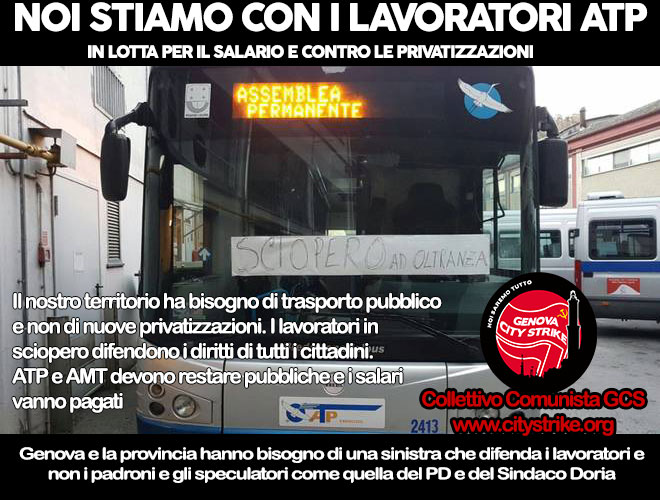 Io cittadino/cittadina ,oggi,sto con la lotta dei lavoratori Atp, ma da domani mi impegnerò per unificare le lotte in questa città. La loro lotta deve diventare la lotta quotidiana di ognuno di noi.