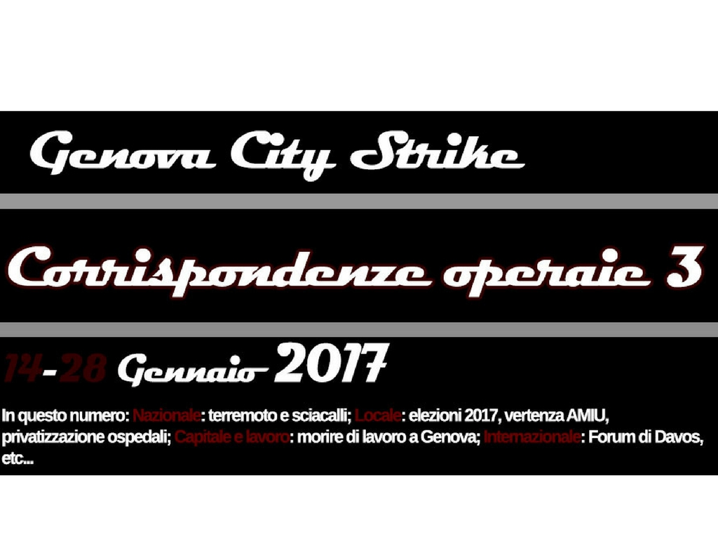 In questo numero: AMIU, Privatizzazione sanità, Elezioni Comunali Genova, Forum Davos, Memoria