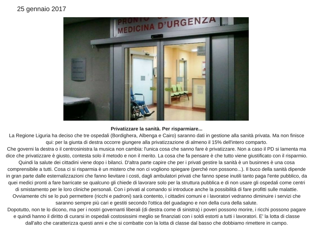 Newsletter periodica In questo numero: vertenza AMIU, Privatizzazione sanità, Stefano Cucchi, Forum Davos, Memoria, Elezioni 2017 Genova