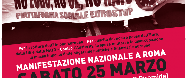 Questa parte di sinistra sarà in piazza il 25 marzo rappresentata dalla piattaforma Eurostop e dalla rete per il no sociale al referendum del 4 dicembre. Noi crediamo che sia un bene che queste prospettive si incontrino in piazza il 25 per contestare la UE e non solo per chiedere una democratizzazione dell’Europa come invece faranno altri soggetti della sinistra radicale. Non pensiamo però che si possa costruire qualcosa con il solo criterio della nemicità. Occorre infatti avere e sviluppare un progetto politico che porti a una sintesi programmatica. Non crediamo infatti che basti l’idea di alimentare le lotte contro il mostro europeista che sta saltando in aria per le sue contraddizioni interne e per il difficile quadro delle relazioni globali.