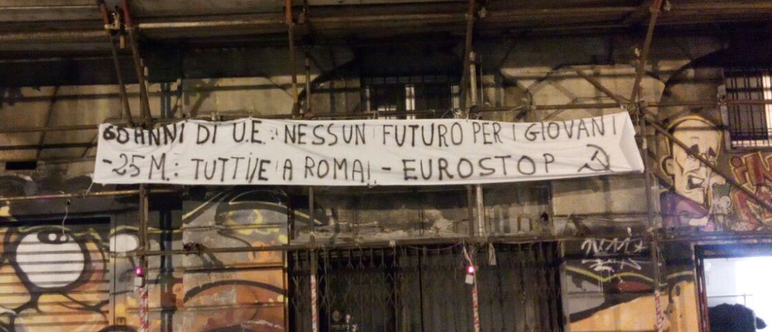 Eurostop esprime soddisfazione per l’ottima riuscita della manifestazione del 25 marzo contro il vertice dell’Unione Europea, manifestazione promossa a movimenti territoriali e studenti in lotta. Per la prima volta nel paese è emersa chiara e forte la posizione di chi ritiene ormai irriformabile e regressiva la gabbia costituita da Unione Europea, moneta unica e Nato. Se c’è una possibilità di cambiamento politico, sociale, democratico, essa non può che darsi fuori da questa gabbia.