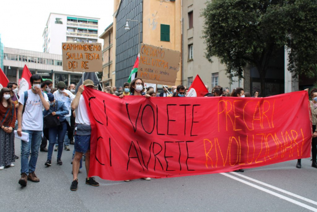 Questa mattina, rispondendo alla chiamata degli studenti e delle studentesse che da giorni occupano il DisFor a Genova, un nutrito corteo si è snodato per le vie del centro per la giornata del Primo Maggio. Un corteo contro lo sfruttamento, contro il precariato, contro le repressione delle lotte. Un corteo per rilanciare l’unità tra i lavoratori e gli sfruttati. E’ la lotta di classe l’unica nostra possibilità. E’ il socialismo ciò che dobbiamo costruire.